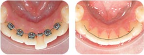 - The braces are highly discreet as they are fixed on the lingual side of the teeth.